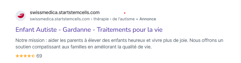 Actuellement certains sites sur internet propose de guérir l’autisme grâce à la « Thérapie par cellules souches ». Voir par exemple ce qu’on peut trouver :